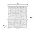 - The large hutch features 6 drawers, 2 doors and 3 large shelve areas for ample display and storage. It measures an impressive 75 wide x 19 deep x 81 inches tall.