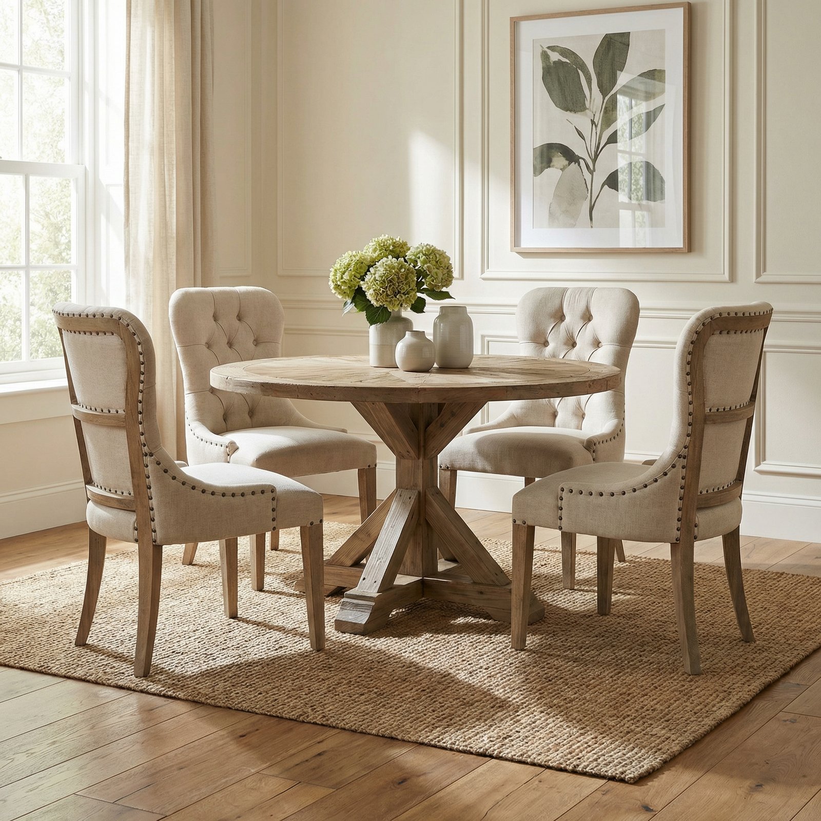 Farmhouse Diamond 48” Round Dining Table Set of 5