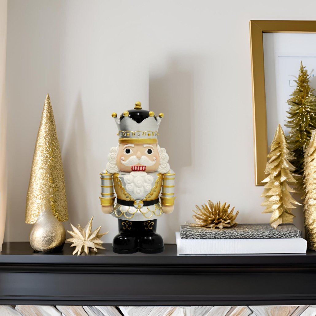 Festive Royal Silver Gold and White Nutcracker with LED Lights