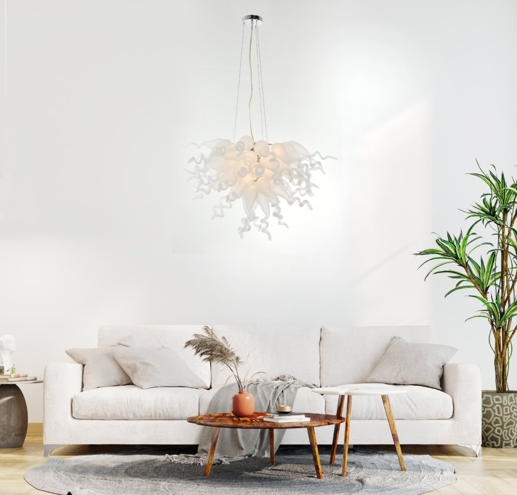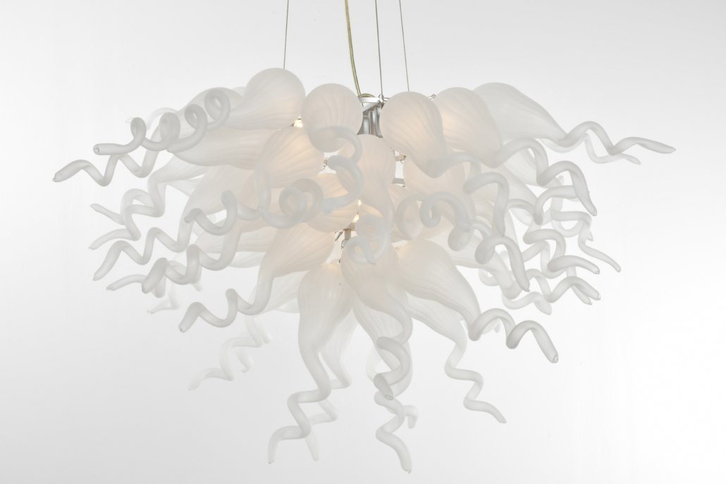 Frosted White Blown Glass Chandelier