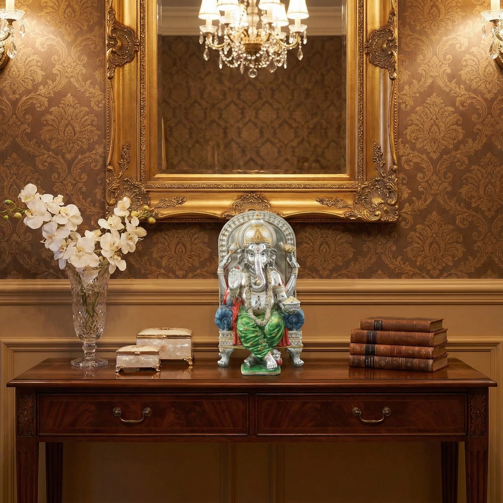 Bring in the presence of the Ganesh in your home or office table with this resin statue. Detailed work by master artisans makes it very attractive and a great gifting option.