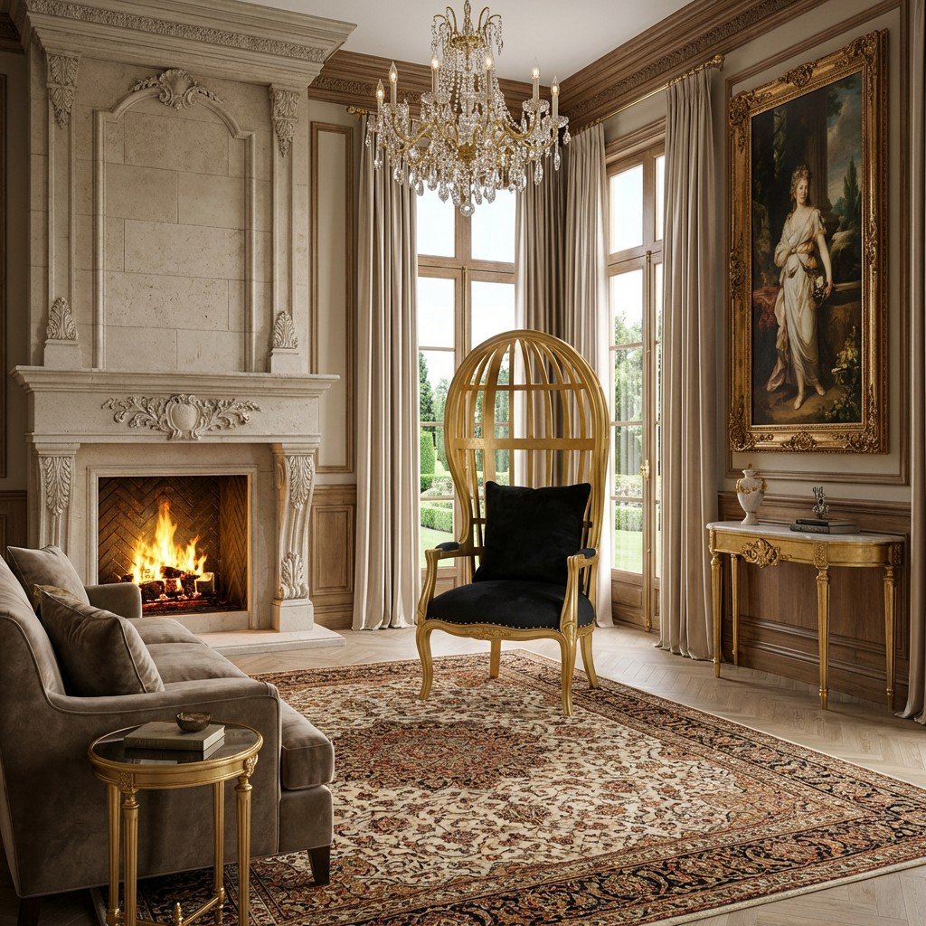 Add a touch of regal elegance to any space with the Majestic Gold Dome Chair. Featuring a high, sculptural back and gleaming gold wood frame, this statement piece brings luxury and drama to living rooms, lobbies, dressing rooms, or event spaces. Upholstered in rich black velvet, it delivers both comfort and bold visual impact.