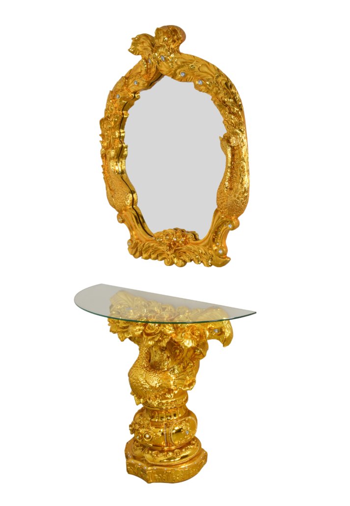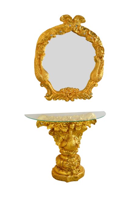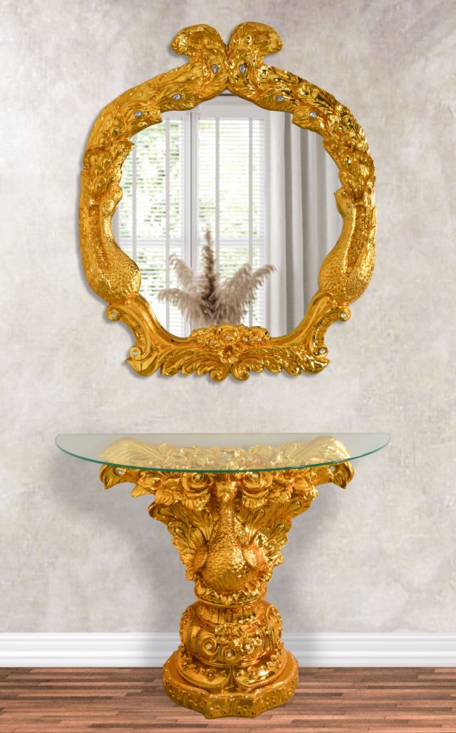 Golden Peacock Console and Mirror