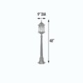 The Gothic Grassland Lamp shows style and elegance in medieval architecture. Featuring a rust proof cast aluminum composition with fantastic details of spires scrolls and archways surrounding the glass light enclosure. Pre-wired for ease of installation. Main electrical wiring is necessary.