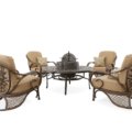 - Complete Fire, Barbecue Chat Group Table and Accessories with 4 Club Chairs