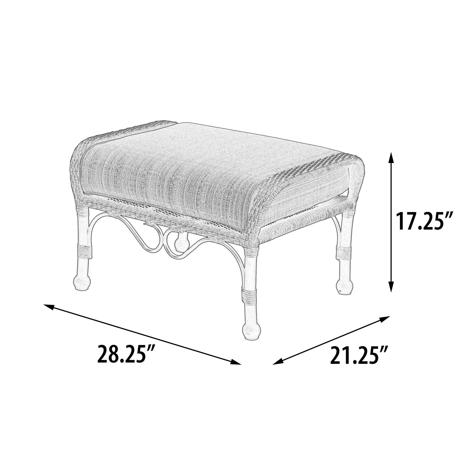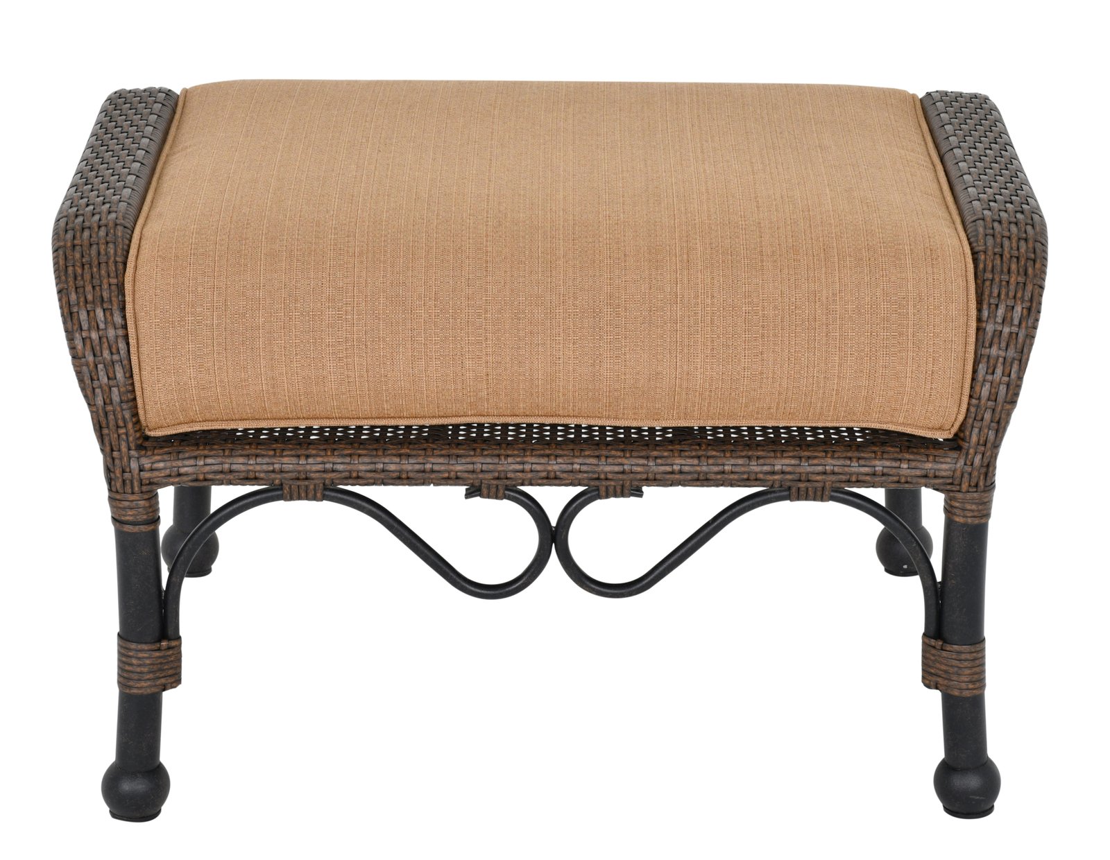 - Bridgeton Moore presents the Grand Bonaire Weave Ottoman from our fashionable Grand Bonaire Weave Collection. A very comfortable ottoman with a plush seat cushion. The collection’s designers captured the emerging trend, popular in high end outdoor furniture, of bringing interior fashions outdoors. To create this exclusive and very beautiful collection the designers combined a beautiful cast aluminum design and softened it by adding intricate hand weaving. The collections design features scrolling elements finished in a brown bronzed tone with hand highlights that accentuate the details, then a multistep powder coat finish is applied that enables a longer lasting outdoor finish. The Grand Bonaire Weave Collection is a large collection, this Grand Bonaire Weave Ottoman can be used stand alone or pairs perfectly with the Grand Bonaire Weave Club Chair for an extended and more relaxing seating combination. The collection offers many other accompanying items enabling you to expand and create your entire outdoor area. You will never find screws used in a Bridgeton Moore Seat, the ottoman is a fully constructed 100% aluminum frame, meaning it is fully welded prior to finishing, the best process to insure long lasting heavy duty stability that will never rust. The ottoman design is further enhanced by delicate hand weaving in all-weather natural looking synthetic polyethylene. No Assembly is Required. The cushion is a special quick drying foam and covered in a soft beige linen Sumbrella Brand fabric, considered amongst the best fabrics for long lasting outdoor use in the industry. Bridgeton Moore has established high brand quality standards and offers one of the best warranties in the Industry, 3 years on all frames and finish under normal conditions, fabrics are all Sumbrella grade and come with a manufacturers supplied two years against any manufacturing defects and or fading from date of purchase. Note * All products used outdoors require reasonable care and that level of care depends on varying external conditions. Covers are recommended for year round outdoor exposure and especially for all coastal applications. Extended exposure in coastal areas can cause corrosion and while this product is used in many coastal applications, they are voided from warranty. Simple hosing down or rinsing off salt exposure if/any will protect and extend the beautiful finish. The fabrics can be easily cleaned in a variety of ways and Sumbrella fabrics are so colorfast they can withstand even the use of bleach.