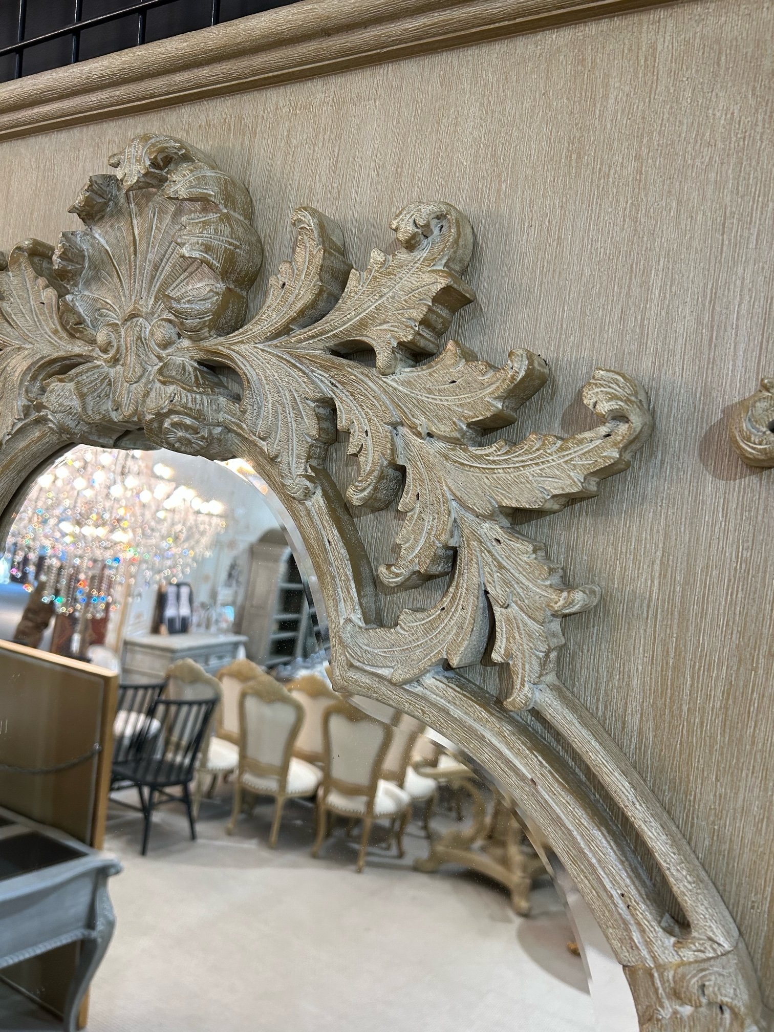 Discover the elegance and serene beauty of the Grand Carved Floor Mirror in the tranquil Beachstone finish. This mirror, standing at an impressive 95 inches tall and 45 inches wide, offers not just functionality but also serves as a captivating decorative element, enhancing the aesthetic appeal of any space it graces. Expertly crafted from kiln-dried mahogany, this floor mirror is built for longevity and resilience. The meticulous kiln-drying process ensures the wood’s stability and resistance to environmental changes, preventing warping and cracking over time. Furthermore, each mahogany frame is rigorously stress and pressure tested, guaranteeing its strength and durability. The Beachstone finish brings a light, refreshing touch to the mirror, featuring a hand-scraped light wood base with a whitewash overlay that adds depth and character. This finish highlights the intricate carvings of the mirror’s frame, providing a subtle yet sophisticated charm that complements a variety of decor styles. Heritage Furniture backs this exquisite piece with a 5-year warranty, reflecting their commitment to quality and customer satisfaction. Moreover, the Grand Carved Floor Mirror can be customized in any Heritage finish, offering the flexibility to match your specific design preferences. Should your space require different dimensions, there is also an option to custom order the mirror in a smaller size. Ideal for brightening and adding a sense of spaciousness to any room, whether it be a grand entryway, an elegant living area, or a luxurious dressing room, the Grand Carved Floor Mirror in the Beachstone finish is a timeless piece that combines functionality, style, and the enduring beauty of expert craftsmanship.