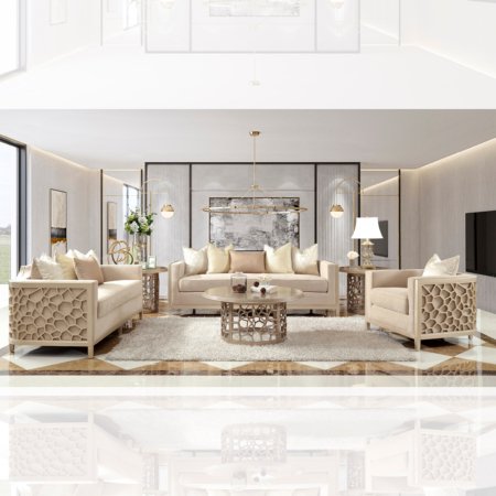 Honeycomb Champagne Sofa Set of 3 (KIT)