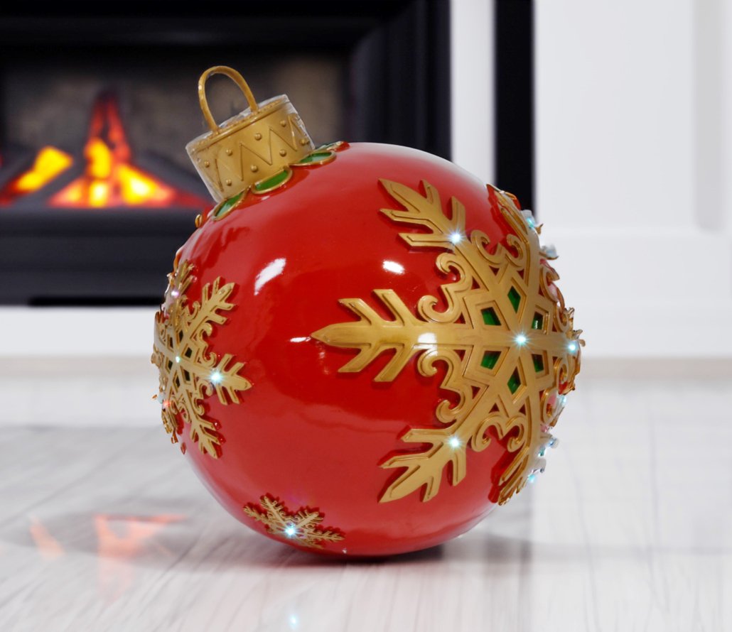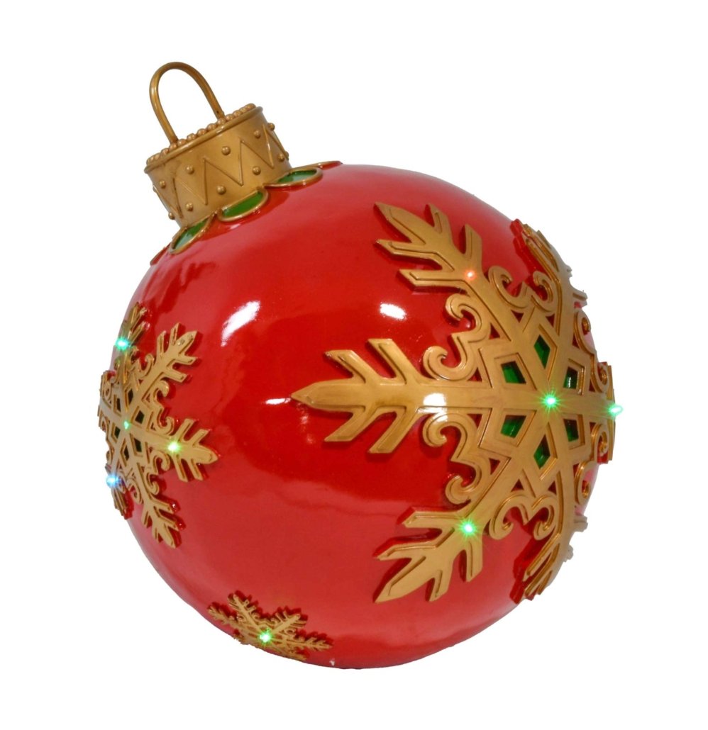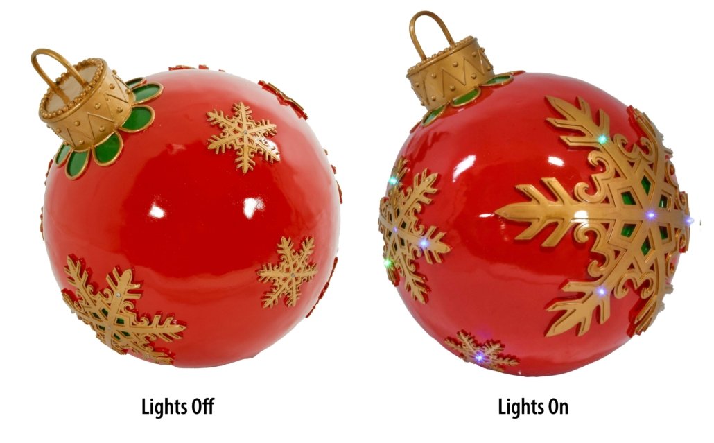 - Elevate your holiday decor with our stunning Illuminated Christmas Red Ornament! This ornament features a brilliant red finish embellished with intricate golden snowflake designs and vibrant green accents. The built-in LED lights add a magical glow, illuminating your holiday celebrations and creating a warm, inviting atmosphere in any setting. It also makes a thoughtful gift for friends and family who cherish festive decorations. Light up your holiday season with this captivating Illuminated Christmas Red Ornament and create memories that will last a lifetime!