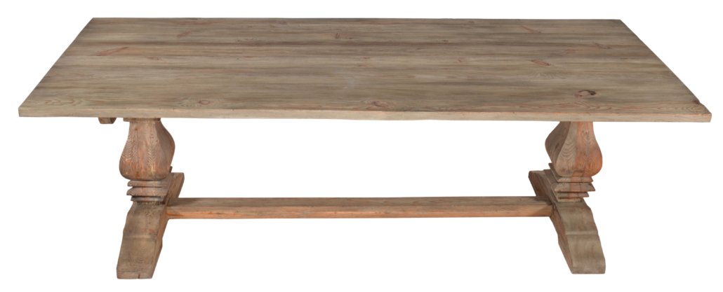 The Inverness Farmhouse Rectangular Dining Table is a full size of 95 long x 39 deep x 31 inches table height. It is hand made using Authentic Reclaimed New Zealand Pine. The finish and style are very appropriate for the period of this design. The item is hand made and also Bench Made, finely crafted furniture that will last with reasonable care, made one piece at a time. The wood used is Reclaimed wood imported from New Zealand; it is old repurposed wood rescued from old barns, houses, barns, boxcars, and wine barrels. Wood that is highly prized for the authentic seasoned effects and age old character. It is environmentally good to repurpose the wood and an essential part of the authentic look and quality of our new American Farmhouse and or our Coastal Series from the Heritage Collection, a division of AFD Home. The Series is an expanding collection with lots of affordable, purely fashioned furnishings offerings befitting a more relaxed American lifestyle. Consider ordering the complete dining set with bench and chairs or matching this table with any of the beautiful farmhouse collections of chairs that will work equally. Complete your room by adding one of the matching sideboards, buffets, or consoles. All of the Farmhouse / Coastal Series pairs perfectly with each other and can be mixed matched and combined to increase the desired interior design. Hand Made and imported from Indonesia. Minor assembly of attaching the top to base and legs required. Perfect for a rustic, coastal, or farmhouse style interior. Handcrafted in Imported Authentic New Zealand Pine Reclaimed wood rescued and repurposed wood from old barns, houses, barn, boxcars, and wine barrels. Wood that is highly prized for the authentic seasoned effects and age old character. It is a part of a popular new American Farmhouse and or our Coastal Series from the Heritage Collection. The Series is an expanding series that is affordable yet appropriately fashioned for a more relaxed lifestyle.