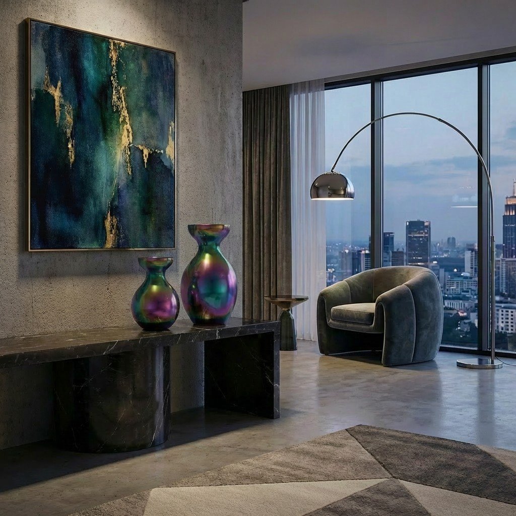 Add a touch of modern elegance and vibrant color to your home d?cor with this Set of 2 Iridescent Vases. Featuring a mesmerizing rainbow finish that shifts beautifully under light, these statement pieces bring a bold, contemporary charm to any space. Perfect for fresh flowers, faux arrangements, or as stand-alone accent d?cor, these vases effortlessly enhance your living room, dining table, entryway, or office.