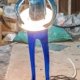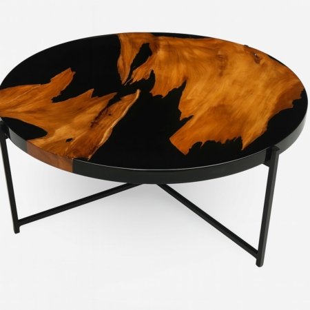 Large Round Teak Resin Coffee Table with Black Iron Legs