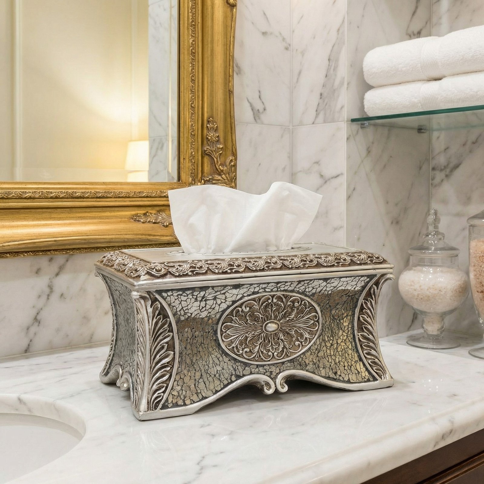 The tissue box is a functional and beautiful rectangular box with an elegant mosaic finish, great to transform any bathroom. This lovely tissue box helps dress up the standard size rectangular cardboard tissue box.