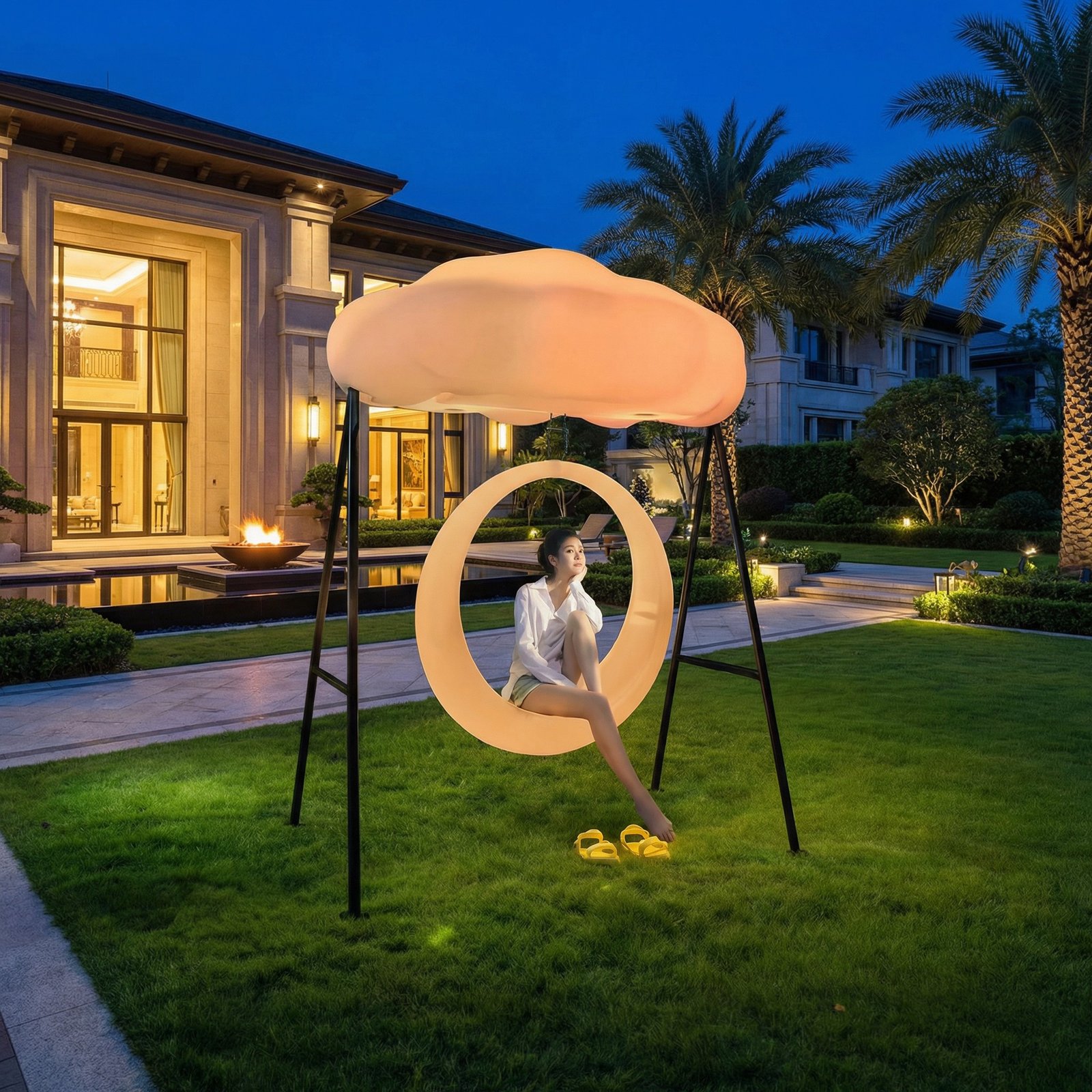 Add a whimsical glow to your outdoor oasis with our LED Color Changing Sun and Cloud Swing. Designed to delight both kids and adults, this enchanting swing features a glowing circular sun seat suspended beneath a soft, cloud-shaped LED canopy. Whether you’re enjoying a quiet night under the stars or hosting a garden gathering, this swing sets the perfect mood.Transform your backyard into a glowing retreat — swing beneath the stars and let the colors of the night take you away.