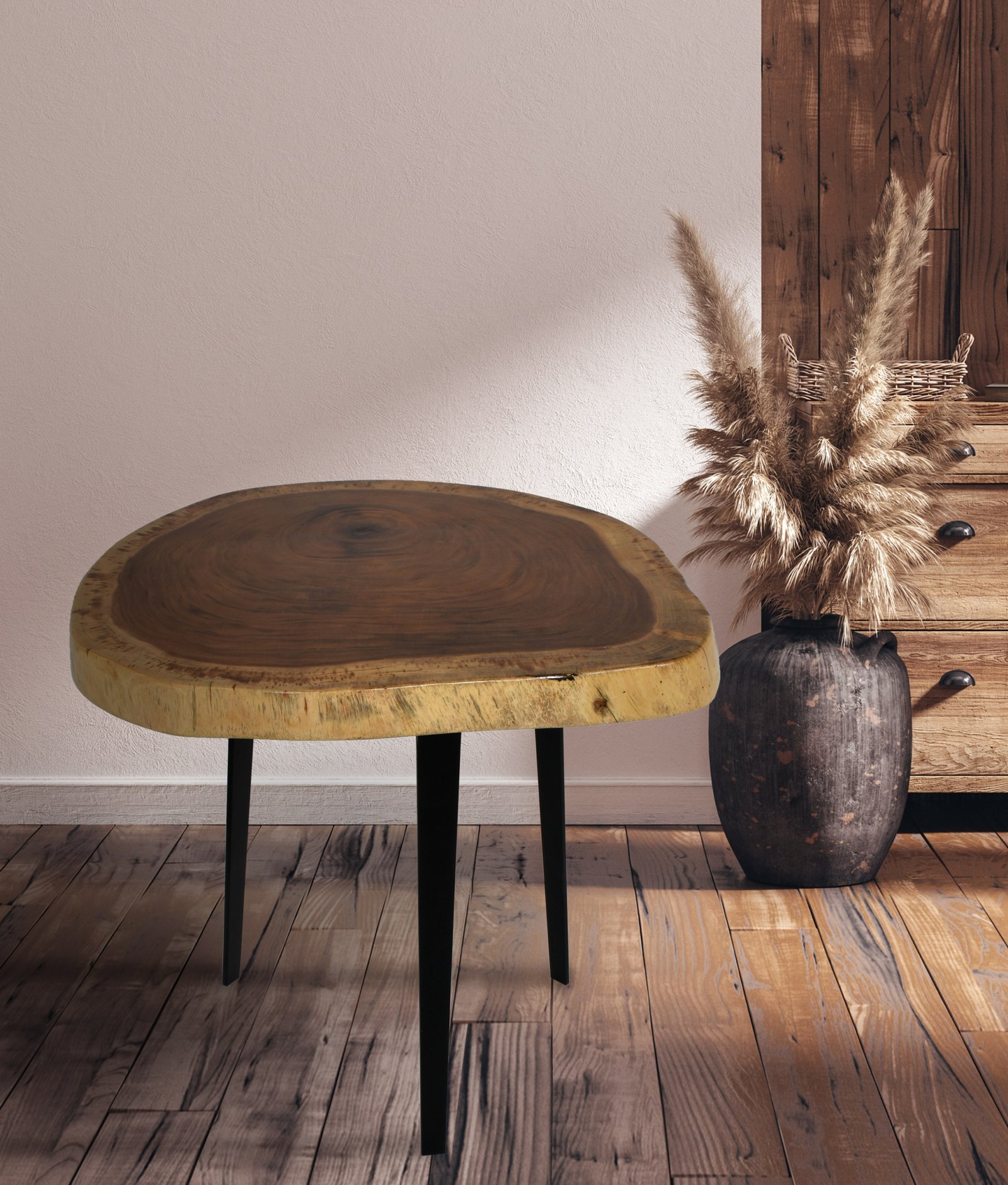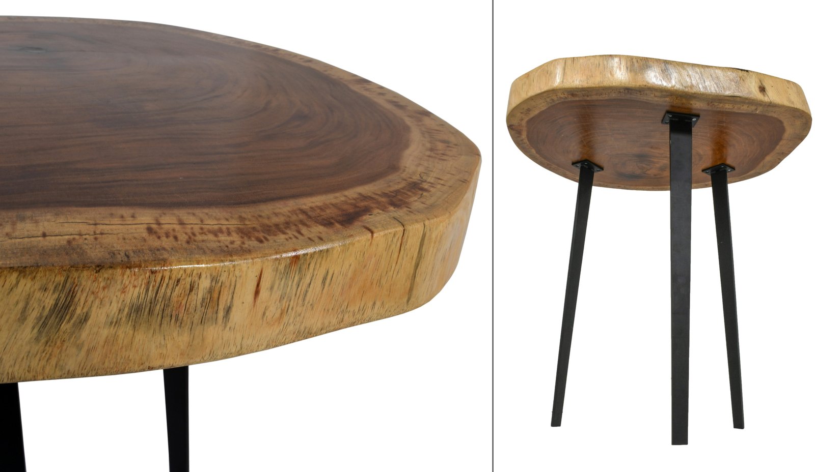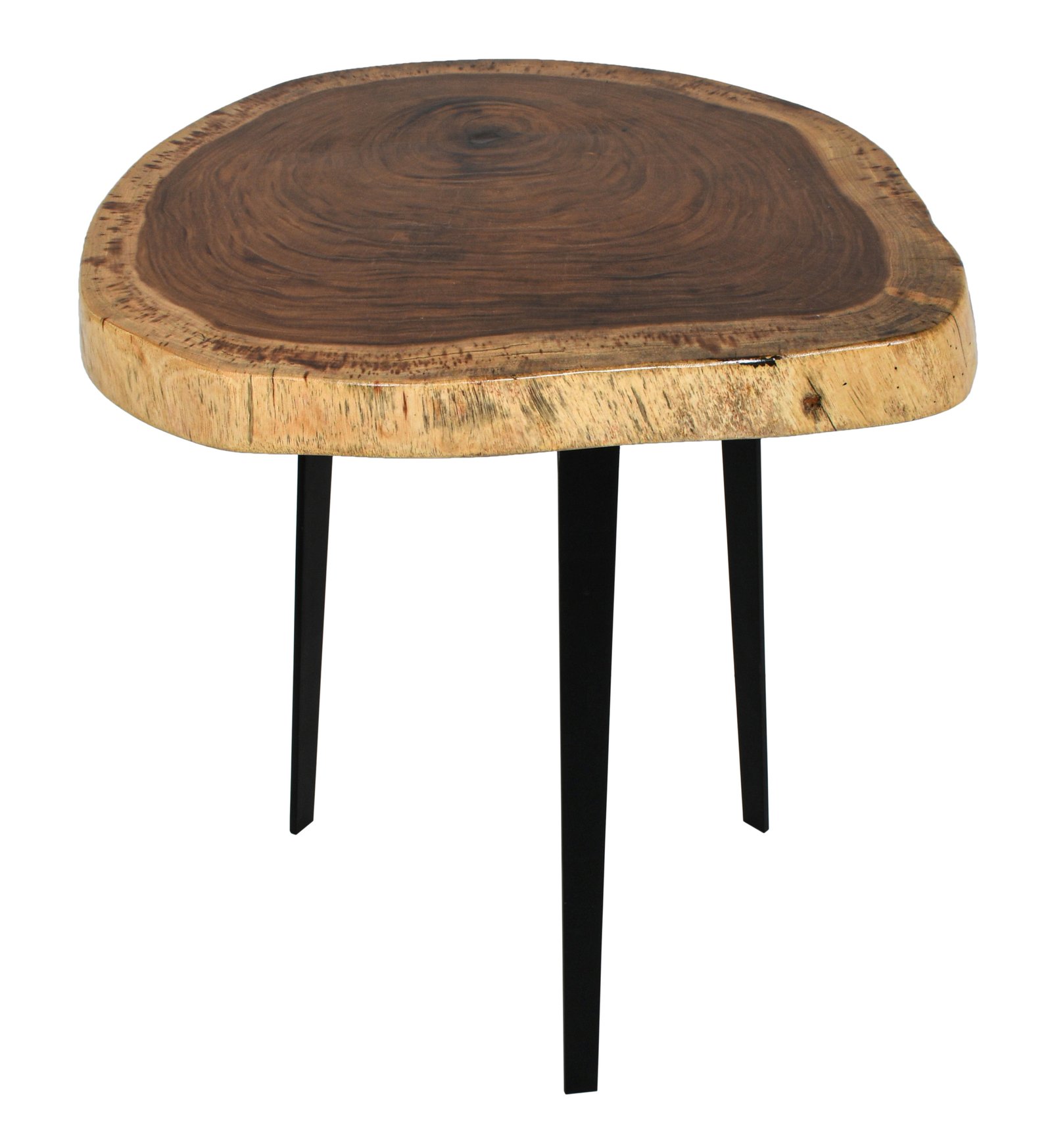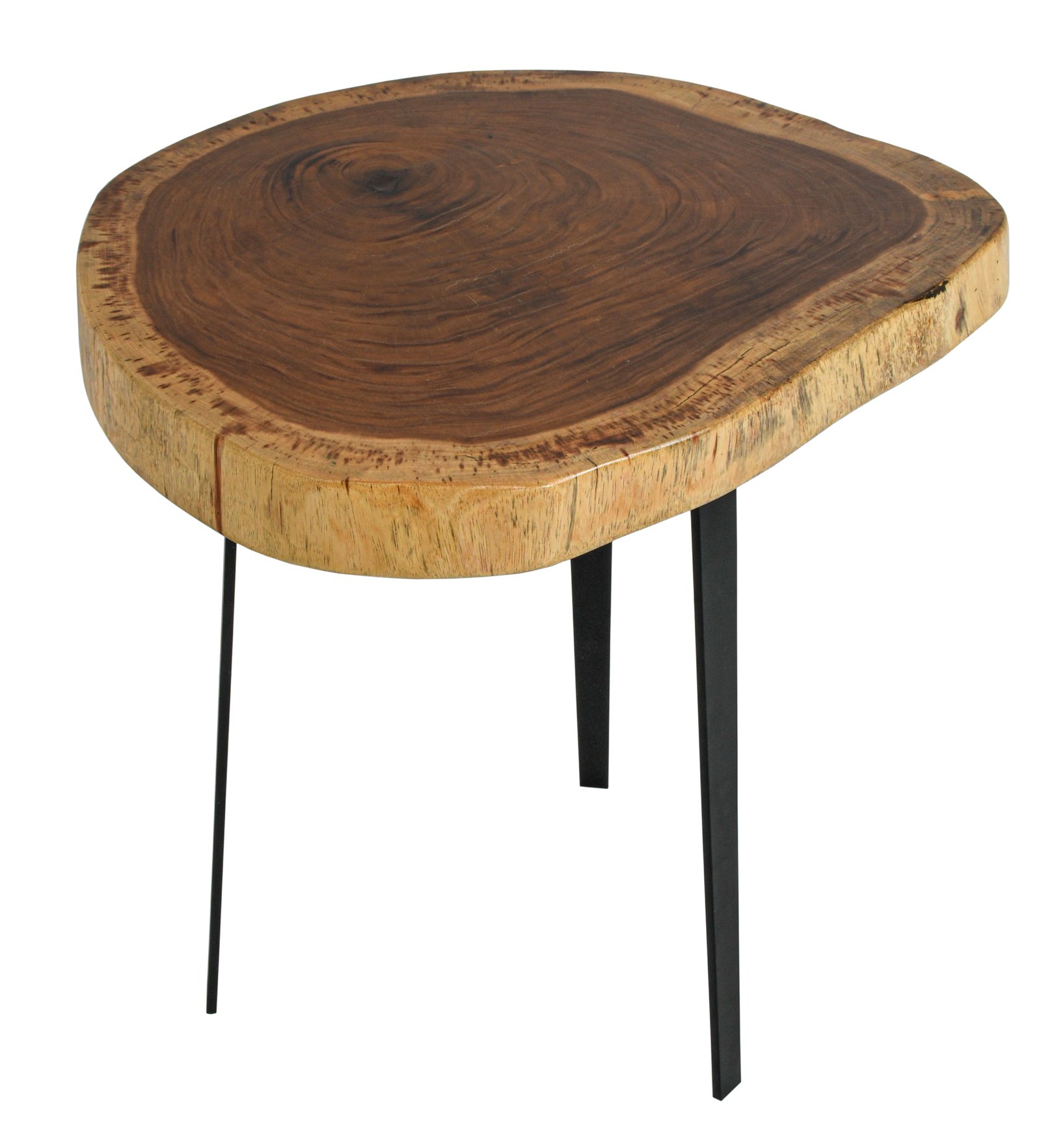 The Suar Side Table is handmade with the natural live edge of the wood as part of the design. Variations of the grain and natural characteristics of the wood add to the beauty of each Side Table while making each unique in their own way. Set on black iron legs, the Suar Side Table is a simple design but introduces mixed materials into your space without being overpowering. Quality craftsmanship and solid wood construction will provide many years of useful enjoyment no matter how you style the Suar Side Table.