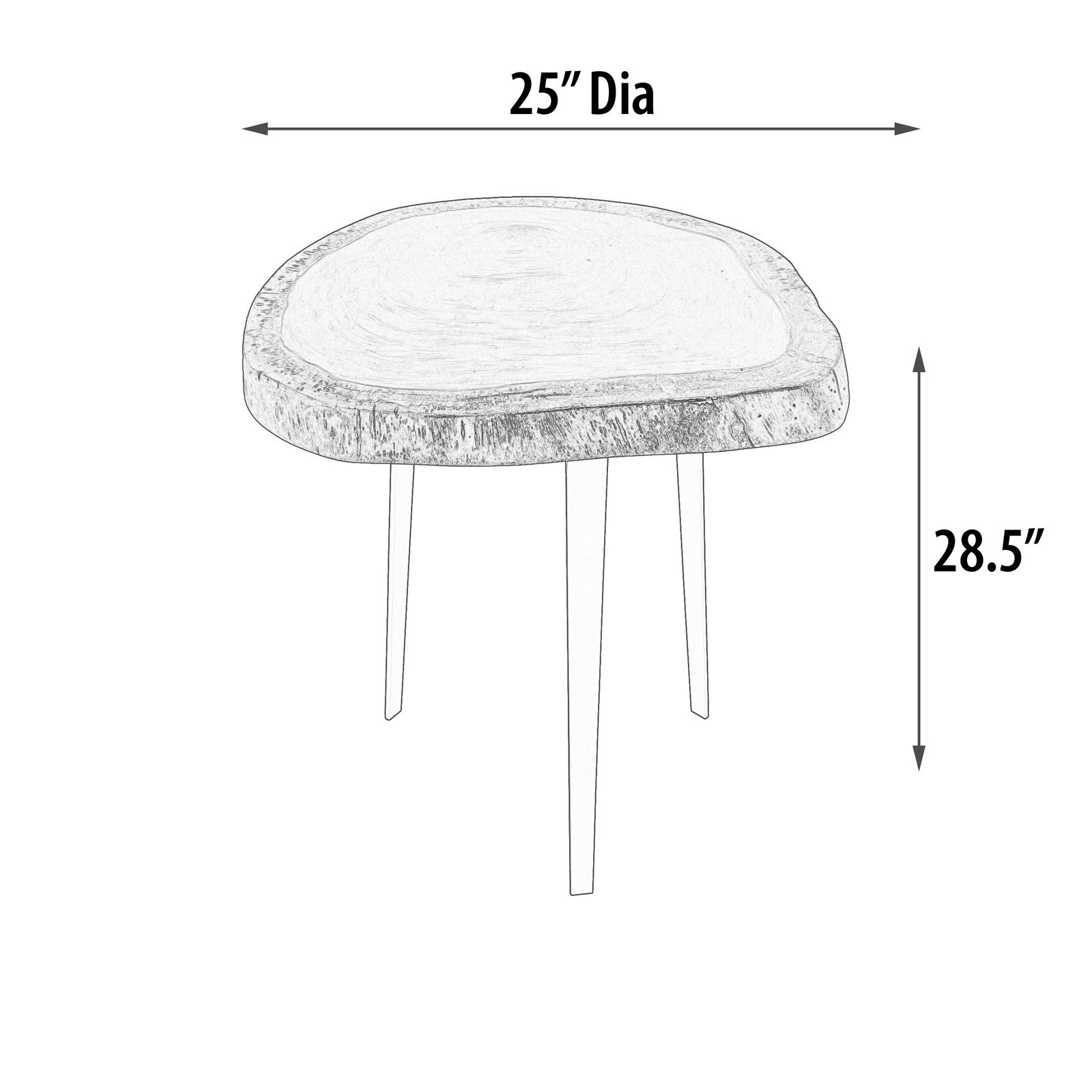 - Dimensions: 25DIA x 28.5H