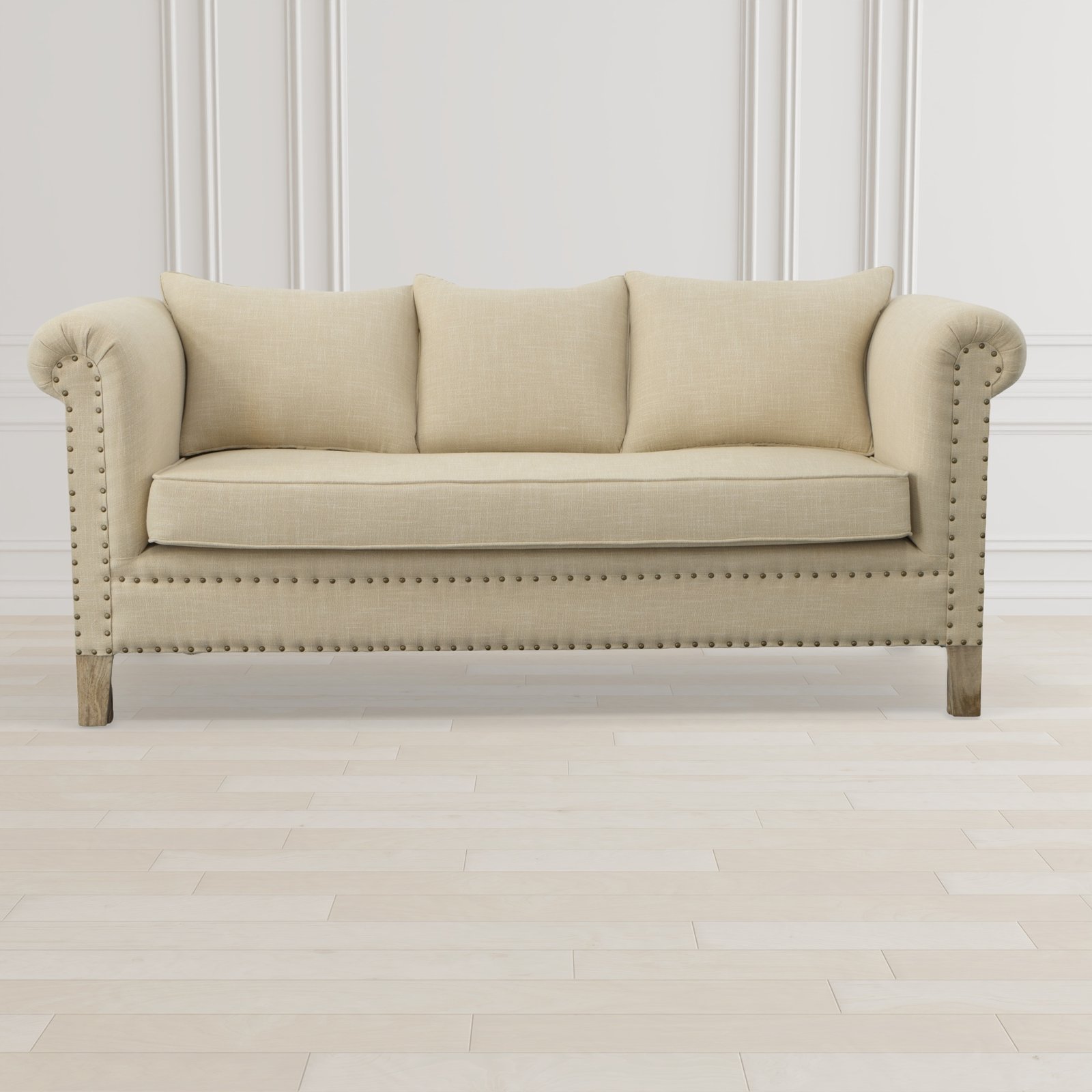 - The Sofa is upholstered in a Neutral Linen fabric.