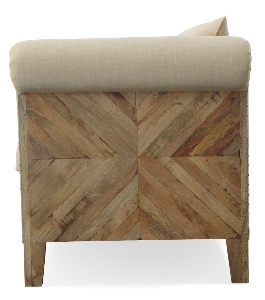 The popular design and quality of our Mango Wood Parquet Collections have lead to this new Mango Wood Solid Parquet and Linen Sofa 72 Inches. Sold separately but designed as part of the beautiful Mango Wood Parquet and Linen Living Room Collection. You may consider combining this spacious chair with the matching Sofa or Chair to finish the Living Room or combine with the matching dining room, bedrooms and Occasional Pieces offered to complete the Home! Sofa Construction; Solid Mango hardwoods frame the sides in an artistic parquet design. Naturally finished with a satin sheen that protects and enhances the wood The grain of the Mango Wood offers beautiful variations of natural color with rich depth and tone. The Sofa is upholstered in a Neutral Linen fabric. Hand Made and Hand Finished in India for AFD Home. No Assembly Required.