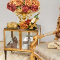 - The hand finishing in rich jeweled tones creates an interesting contrast with the variegated golds, silvers, and antiquing.