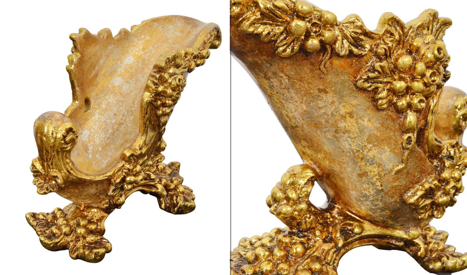 A top selling Medici Wine Bottle Holder, from our House of Medici collection, measures 11.6 inches wide x 5.51 inches deep x 7.87 inches tall. This sleigh shaped bottle holder was designed to hold a standard wine bottle. The grape and vine carvings are perfect elements used to design this tabletop wine display item. A collection inspired by the art of Florence and Italian Renaissance grandeur. The hand finishing in rich jeweled tones creates an interesting contrast with the variegated golds, silvers, and antiquing. Hand cast in durable Polyresin. Consider combining the Medici Bowl Grape Vine Design with Handles or mix and match the many other beautiful offerings from the Fabulous Medici Collection. A Great Gift Item.