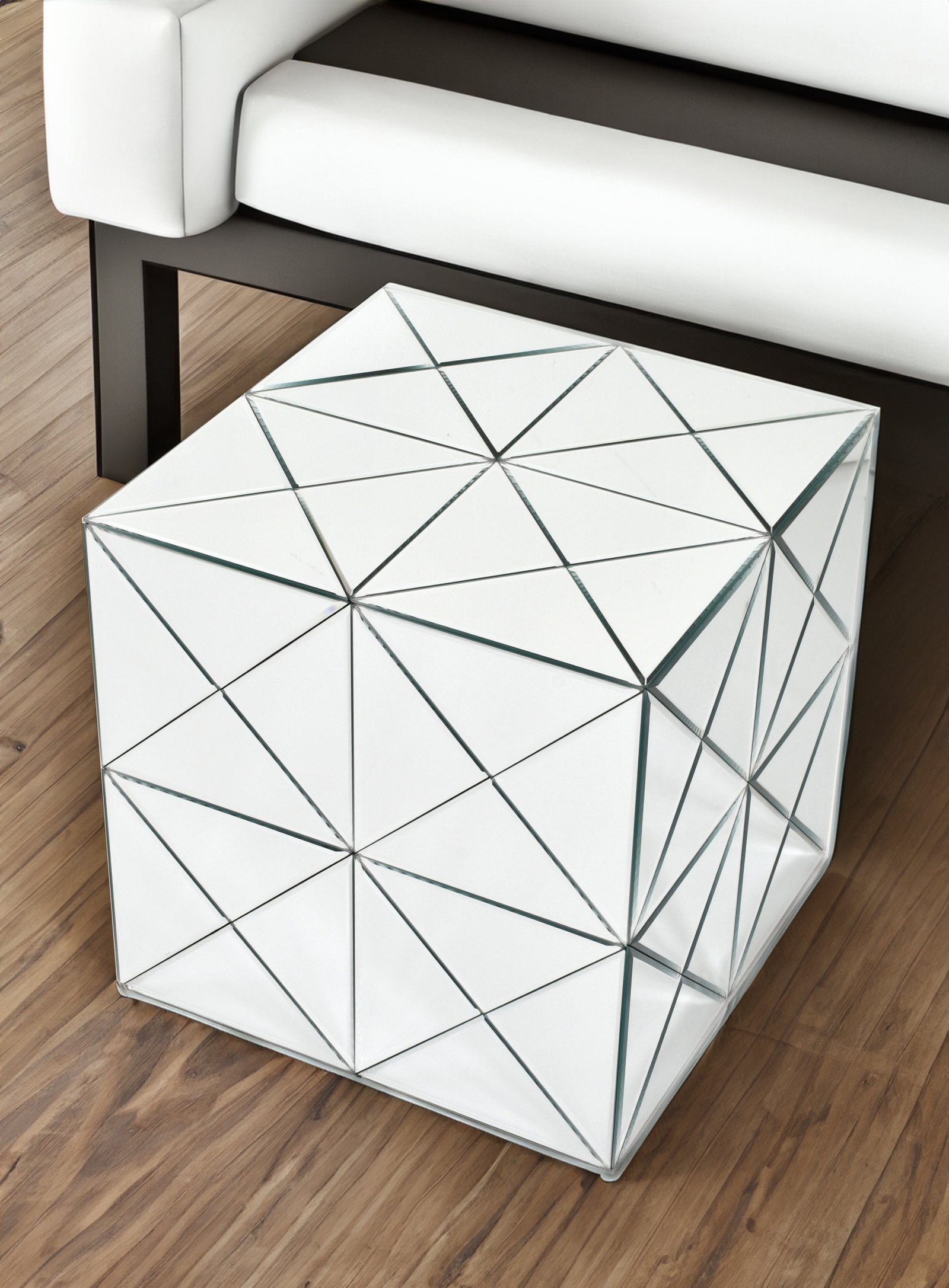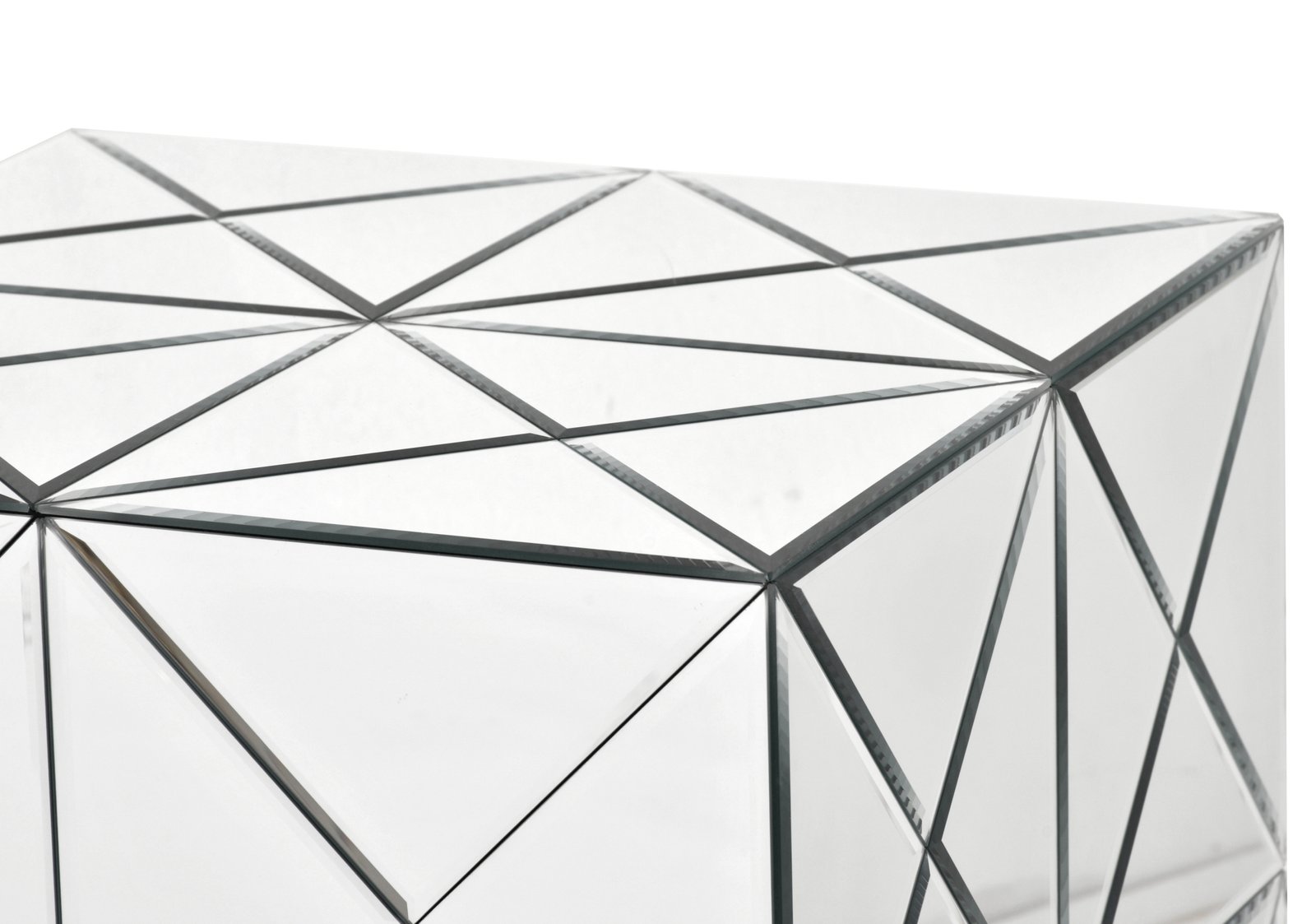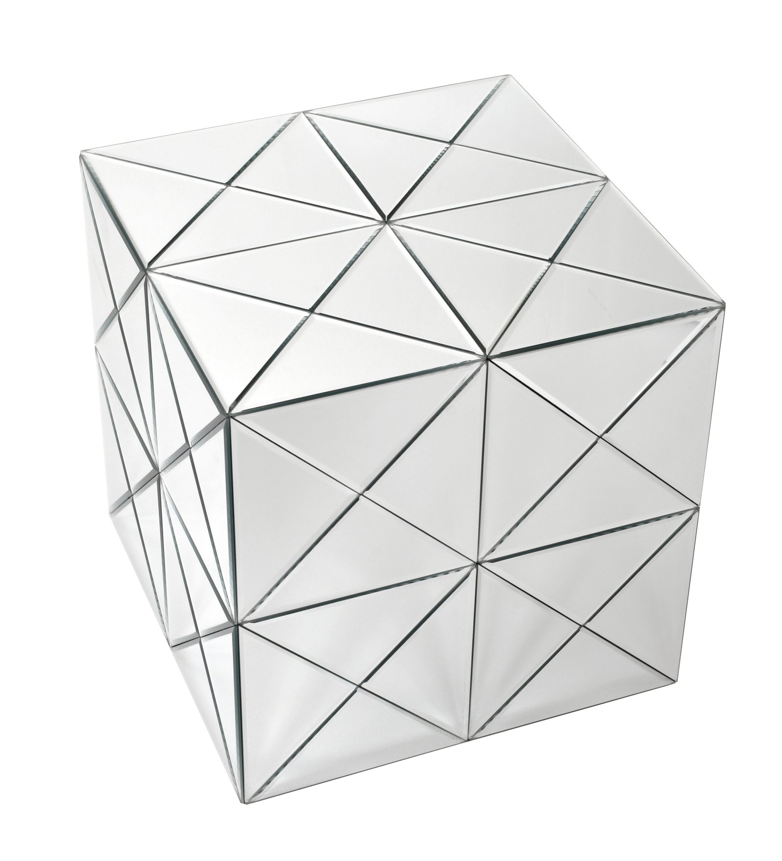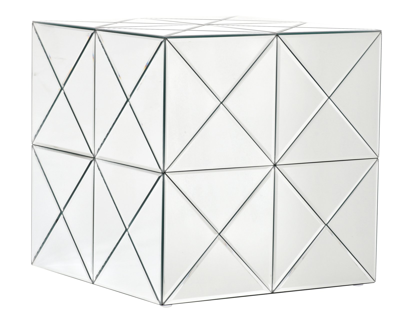 Add a touch of modern elegance to your space with the 18-Inch Mirrored Cube, a versatile piece that serves as both a striking side table and a sleek pedestal. Measuring 18 inches wide, high, and deep, this cube features a stunning geometric design with triangular mirrored panels that catch and reflect light from every angle. The mirrored surfaces create an illusion of expanded space, making it ideal for smaller rooms or as a dazzling focal point in any setting. Whether you use it as a chic accent table beside your sofa or bed, or as a pedestal to showcase your favorite décor, this mirrored cube brings both style and functionality. Its sturdy construction ensures durability, while the contemporary design complements a variety of interior aesthetics, from modern minimalist to glam.