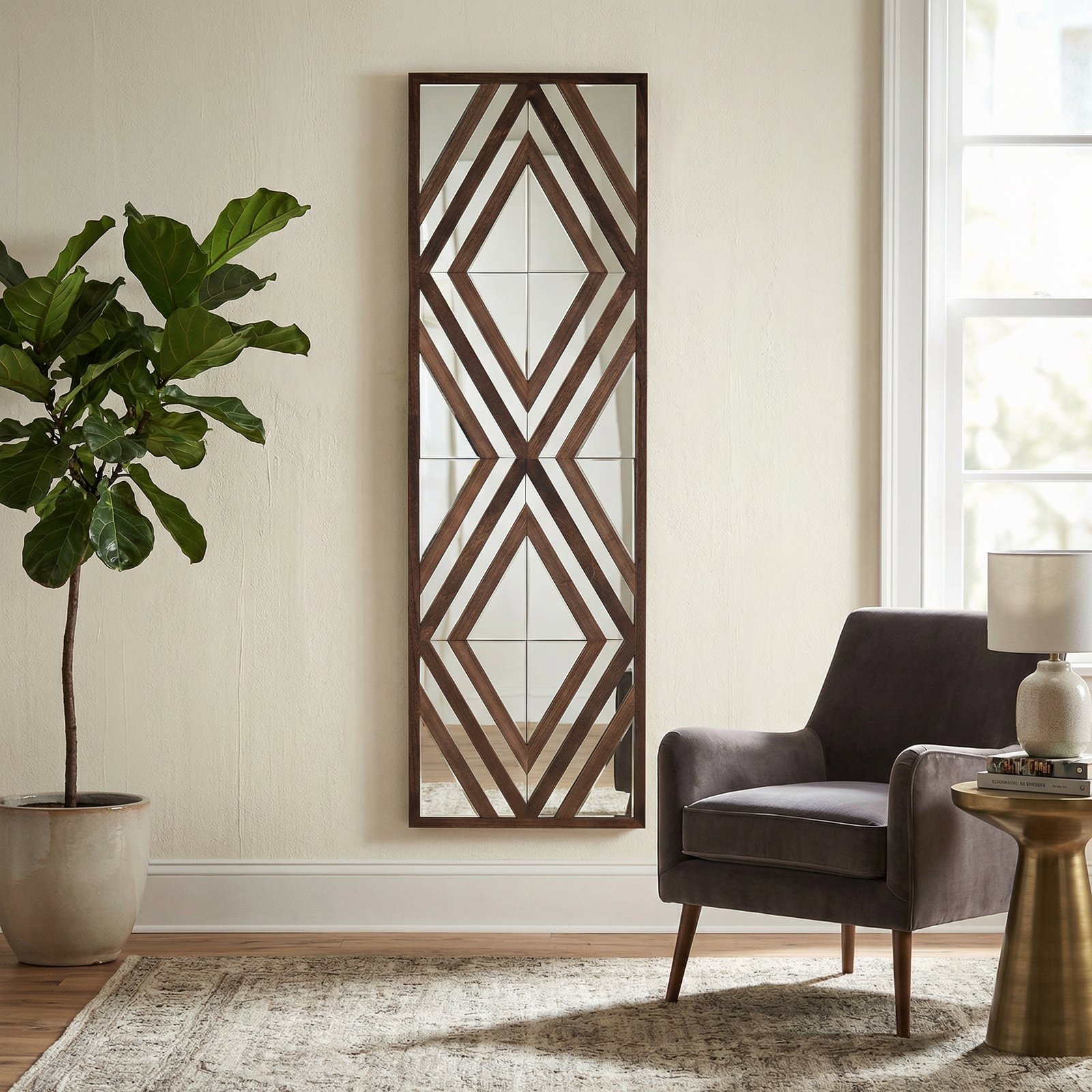 - The Modern Aspen Double Diamond 74 inches Mirror measures 21.25 inches X 1.5 inches X 72.50 inches.