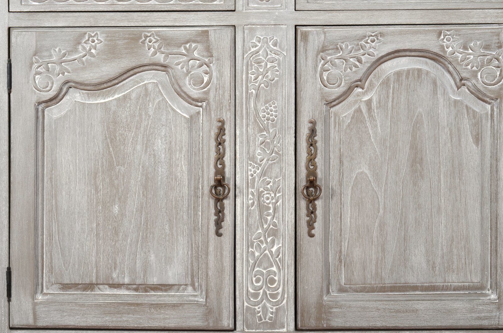 Our Mystique Grey French Country Buffet Features is one of the newest expansions to our Hot and New Mystique Collection from Heritage, a division of AFD Home. It is clean lines lend richness to a simpler luxurious lifestyle. Our Mystique Grey finishing technique has evolved over the years and as such, is the special focus of this new Collection. Mystique Grey is so peaceable by today’s top designers because it is truly a color that is without color, A salute to a new contemporary, sophisticated lifestyle, a combination of finish and design that celebrate the beauty of fine grain of the wood and enhance the vestiges of this rich wood gloriously visible in a tone that will create solidity to your overall design.