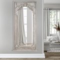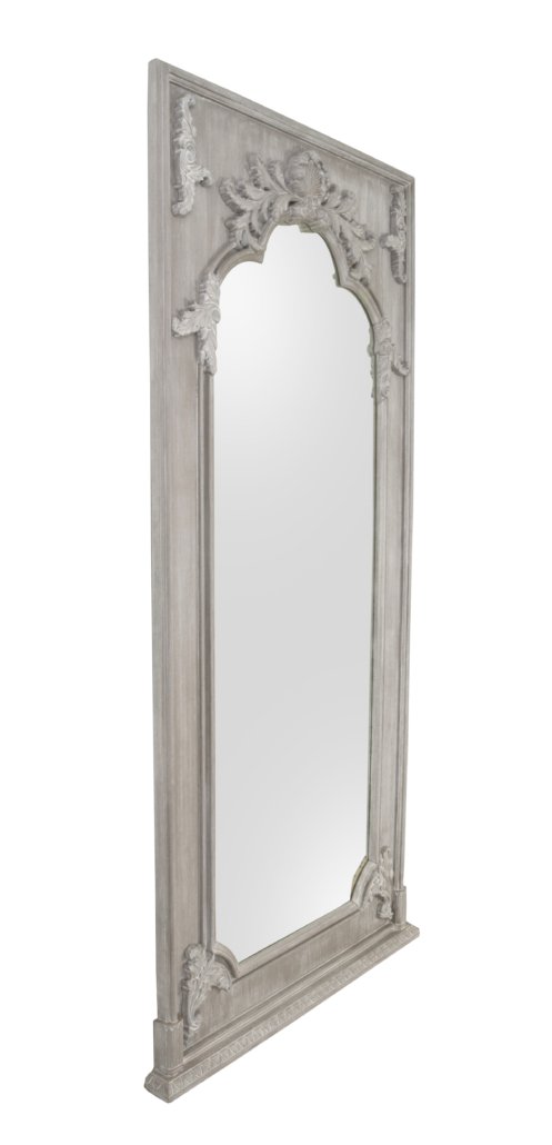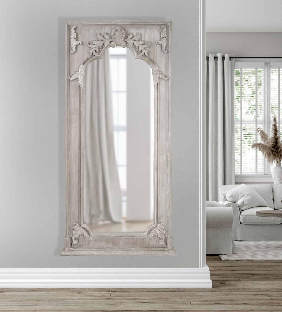 Our Mystique Mahogany Grand Mirror is a spectacular floor mirror standing 95″ Tall and 45″ Wide from our new Mystique Mahogany Collection from Heritage, a division of AFD Home lending richness to a simpler luxurious lifestyle. The mirror, with its intricate detail, was hand-carved out of hand-selected Mahogany and then tastefully finished in our NEW intermediate Mystique Grey, a neutral or achromatic color. Our Mystique Grey finishing technique has evolved over the years and as such, is the special focus of this new Collection. Mystique Grey is so placeable by todayÂ’s top designers because it is truly a color that is without color, A salute to a new contemporary, sophisticated lifestyle steeped in traditional roots. A combination of finish and design that celebrate the beauty of the fine grain of the Mahogany wood and enhance the vestiges of this rich wood gloriously visible in a tone that will create solidity to your overall design. Our Mystique Mahogany Grand Mirror combines beautifully with any of our Mystique Mahogany Grey Collection offerings. Hand-Carved, also referred to as Bench -Made Furniture of this nature and quality, are very rare and as such, will surely become an heirloom for generations to come and a conversation piece for a Home Today!