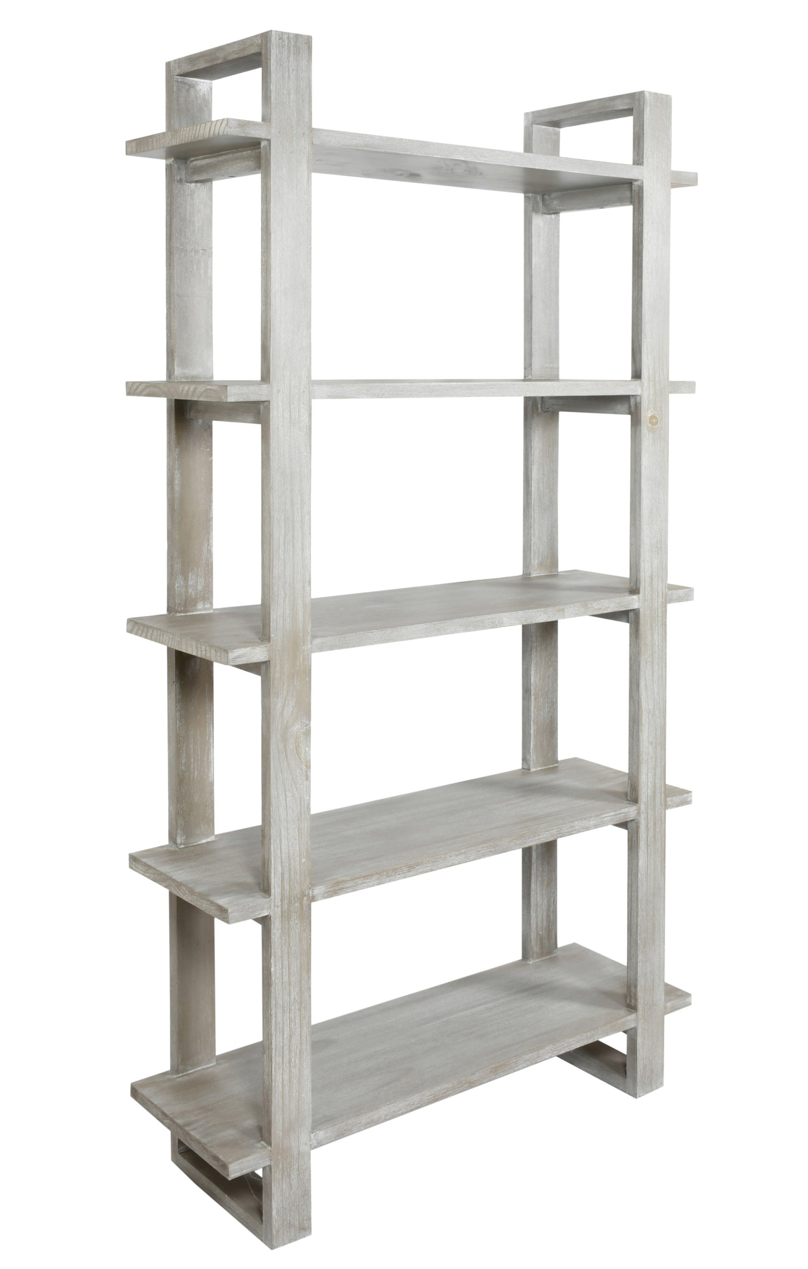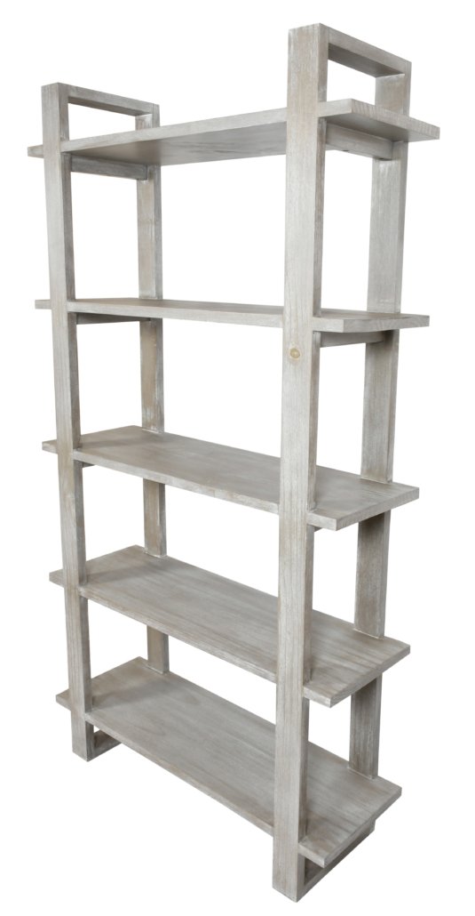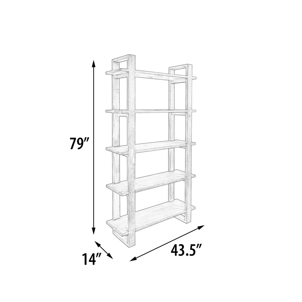 - The Mystique Grey Mid Century Rustic Bookshelves stands 43 wide X 14 depth x 79 inches tall.