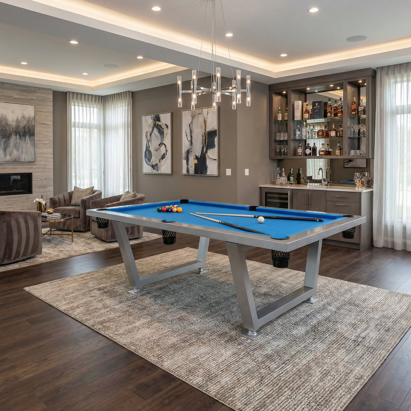 - High Quality 301 Stainless Steel combines with weather resistant pockets and water proof felt to offer a versatile playing ultra modern design professional playing Pool Table.