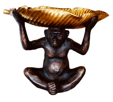 A beautiful centerpiece for a focal decoration. Well depicted monkey figurine balancing on a size leaf planter fictional. Fully Assemble