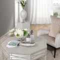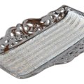 A 13.75 inches wide Princess Vanity Tray from our Princess Crystal series the collection embodies todays trending tones of silver and offers sparkling Glam with is an abundance of crystals for a dressing table, dresser, desk wherever a little sparkle and organization may be desired. This item is cast in porcelain with a plated silver body and features hundreds of individually applied clear Rhinestone jewels in an attractive zipper cut pattern intermittently spaced row by row over the exposed surface. Consider mixing it up with other Princess Series items for a larger display affect. No Assembly required. Makes a great Gift.