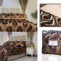 Egyptian Linen Queen Duvet Bed Set. Raya Gold and Burgundy Premium, Imported from Egypt exclusively for AFD Home