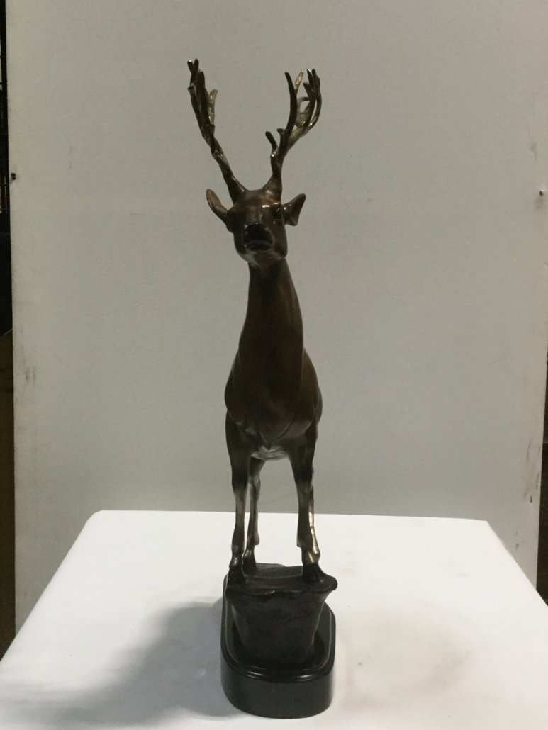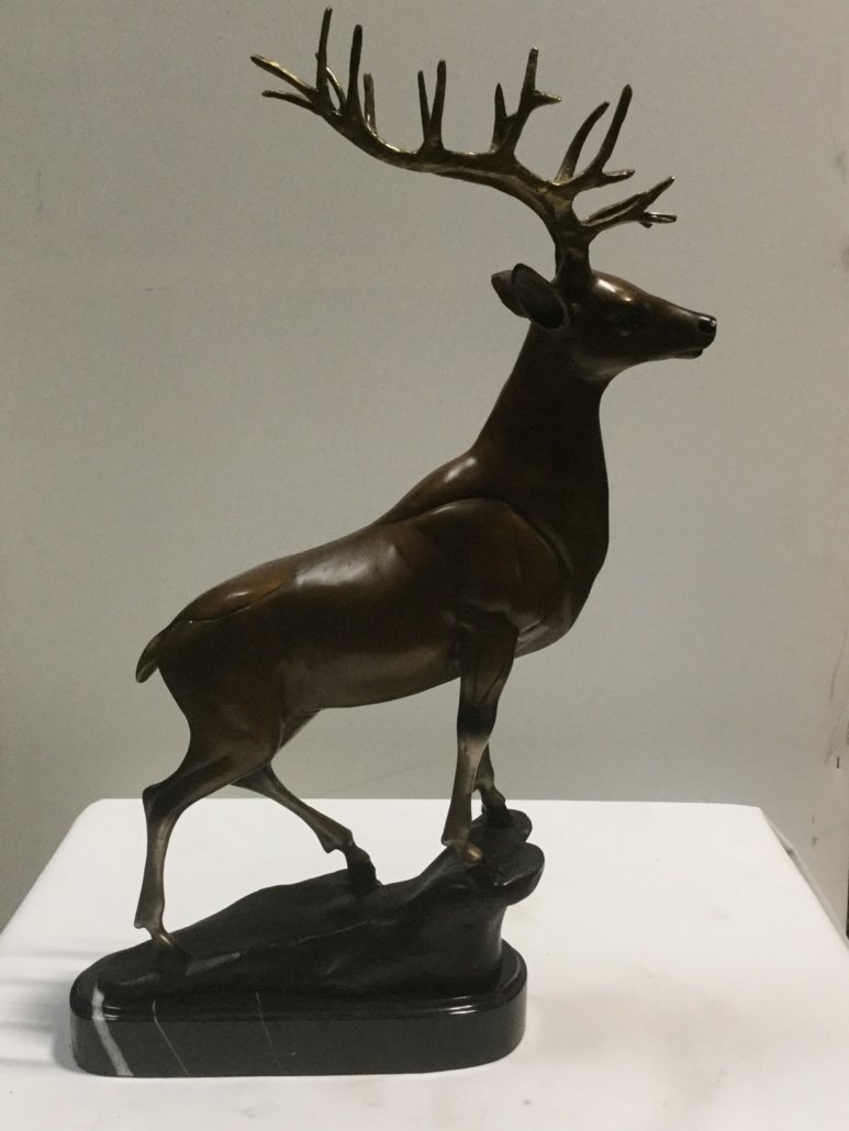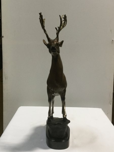 Bronze and Marble Creations Reindeer Bronze on Marble Base 22.5in