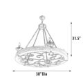 The Ridge Line 38″ Chandelier gives your home’s lighting a quirky twist with its rustic style. The wood chandelier comes in a brown distressed solid wood frame and vintage black rust handmade finished metal components. It holds candle bulbs with a retro pattern on the bottom. The overall gorgeous style brings a vintage rustic industrial design to life in any farmhouse-inspired place.