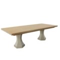 The Rectangular Double Pedestal Dining Table from the Santa Barbara Collection by Heritage Furniture, a blend of contemporary style and enduring craftsmanship. This elegantly designed dining table measures 97.5 inches in width, 43.25 inches in depth, and 30 inches in height, providing a spacious and inviting platform for dining and entertainment. Featuring a robust double pedestal base, this table not only boasts an impressive aesthetic but also offers unmatched stability and generous legroom. It comfortably accommodates eight diners, making it perfect for everyday meals and intimate gatherings ensuring no one is left out during larger celebrations or events. Crafted from kiln-dried mahogany for enhanced durability and resistance to environmental stresses, this dining table undergoes rigorous stress and pressure testing to guarantee its longevity and performance. Heritage Furniture’s commitment to environmental stewardship is evident in the use of wood from replanted forests, ensuring that your choice is both beautiful and ecologically responsible. Backed by a comprehensive warranty from Heritage Furniture, this table stands as a beacon of quality and reliability. Though it radiates modern charm in its current finish, you have the option to personalize it with various Heritage finishes to complement your dining space’s d?cor. deal for those who appreciate both form and function, the Rectangular Double Pedestal Dining Table from the Santa Barbara Collection seamlessly combines elegant design with practicality, promising to be the centerpiece of memorable meals and cherished moments for years to come.