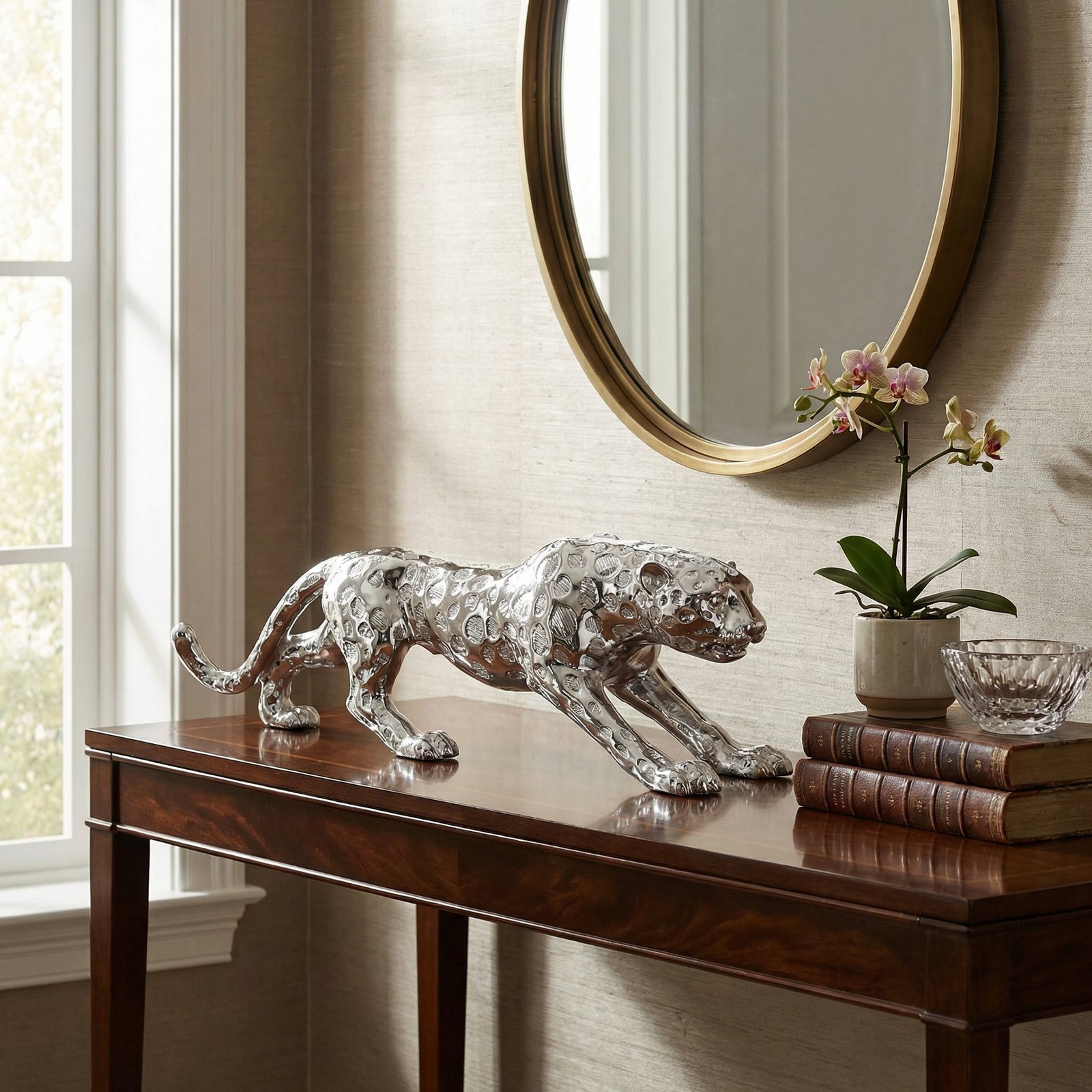 - A decorative Standing Silver Leopard 31 Inches Long