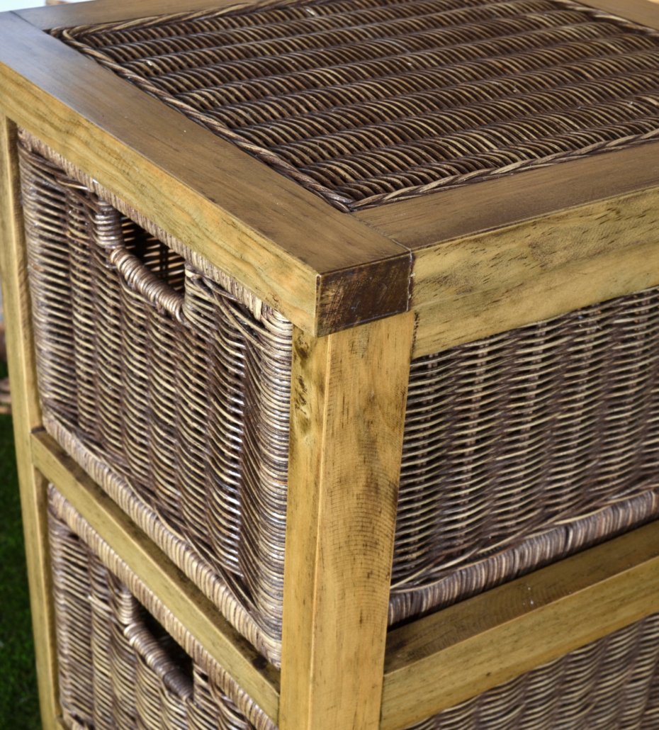 A charming natural style is a suitable design for a variety of popular interior styles from rustic, farmhouse, transitional to coastal. Mountain Studios designed this Taller and Narrower Storage cabinet for natural organic beauty with ample storage function with 3 drawers. You will like that each bin drawer is hand woven re-enforced Rattan construction, which will support and hold the drawers for years of use. Hand made 1 Chest at a time by the local furniture Crafters using solid natural Mahogany. Each drawers is Hand Woven over a reinforced structure using Natural Rattan Weave. The natural Mahogany with the natural Rattan is a naturally beautiful finish combination. Customers who like this style may also like the Storage Chest, 7 Drawer, 42 Inch, or the popular Mud room style or children’s Storage Bench, 54 Inch to complete a design or fill the function needed. Imported from Indonesia and exclusively manufactured for the AFD Home Collection.