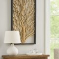 Add a touch of nature-inspired beauty to your space with the Teak Branch Wall Hanging, a medium-sized single branch piece measuring 31.5 inches in width, 2.5 inches in depth, and 55 inches in height. This artful creation is carefully handcrafted from genuine teak branches, selected for their natural elegance and individual character. Just like its larger counterpart, each branch is meticulously cleaned and bleached to present a clean, rustic aesthetic that highlights the wood’s natural allure. The unique patterns, textures, and tones of the teak branch are beautifully showcased, creating a piece that is as much a tribute to nature’s artistry as it is a striking decorative element. Set against a simple black frame, the teak branch stands out, commanding attention while maintaining a sense of serenity and organic grace. This medium-sized wall hanging is versatile enough to complement various decor styles, from bohemian to Scandinavian, and can be displayed in living areas, bedrooms, hallways, or offices. Durable and designed to last, the Teak Branch Wall Hanging brings the outdoors in, offering a unique way to infuse your environment with a touch of natural charm and understated elegance. Whether you’re looking to create a calming atmosphere or add a distinctive focal point to your room, this piece is sure to enhance your decor with its timeless appeal and handcrafted beauty.