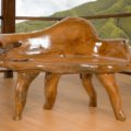 This medium-sized Natural Teak Wood Bench exemplifies a harmony between functionality and the raw beauty of nature. With overall dimensions of approximately 37 inches in width, 16.5 inches in depth, and 32 inches in height, it presents itself as both a practical seating option and a striking piece of artistry. Each bench in this collection is a one-of-a-kind creation, paying homage to the distinct characteristics of natural teak. The careful selection of wood showcases the grain, knots, and organic contours that make every piece unique. Its robust form is hand-finished, accentuating the warm hues and rich textures of the teak, ensuring that it stands out in any setting. Built to last with solid wood construction, the bench requires no assembly, arriving ready to integrate into your space. Whether placed outdoors to complement a garden’s landscape or indoors as a rustic accent, the bench is designed to weather the elements, with teak’s natural resilience adding to its charm over time. Embrace the individuality of each bench, knowing that yours has no identical twin in the world. This bench isn’t just a seat; it’s a conversation starter, a statement of eco-chic style, and a testament to sustainable craftsmanship.