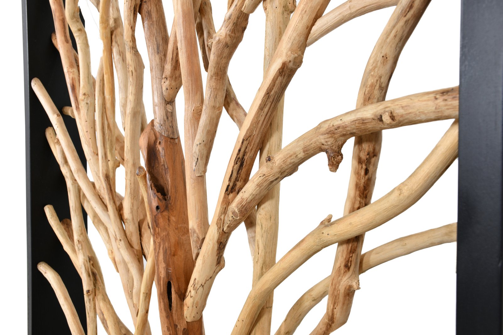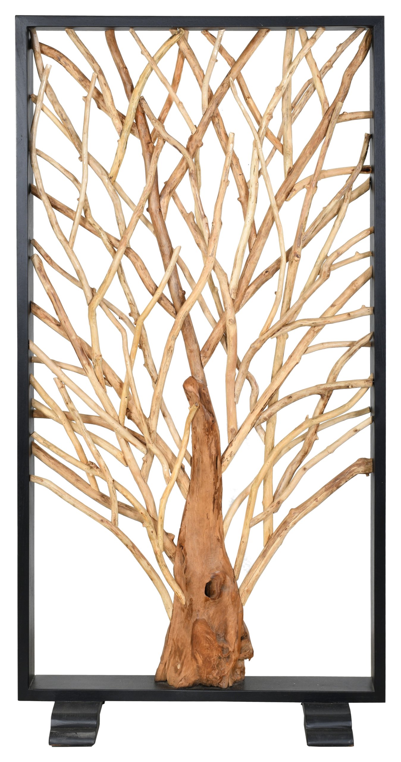 Elegantly designed taking care to perfectly position each natural teak root branch within the frame creating a tree of life in the design. A perfect touch of organic decoration to create seperation in your space without giving up an open feeling