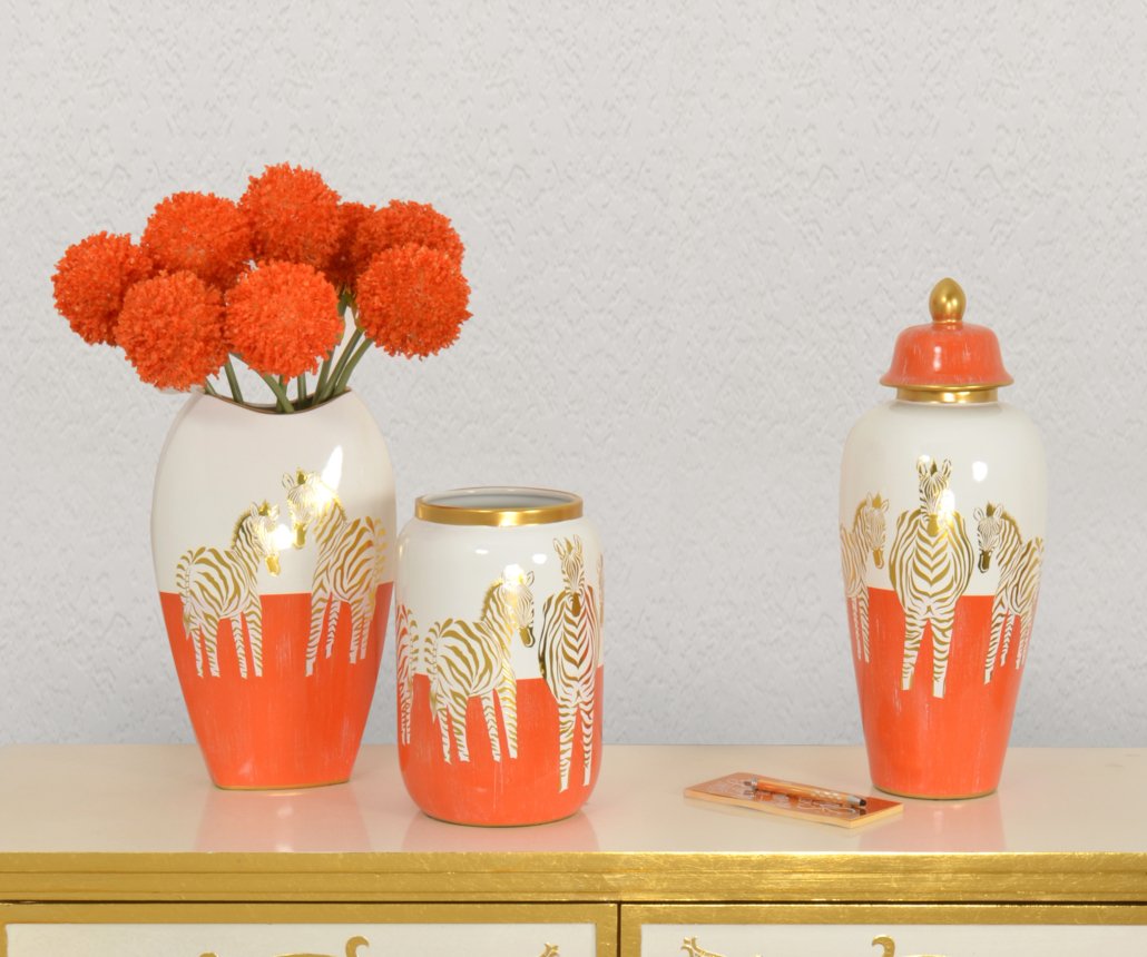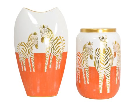 - Zebra White Gold and Orange Vases set of 2 is a fresh new offering.
