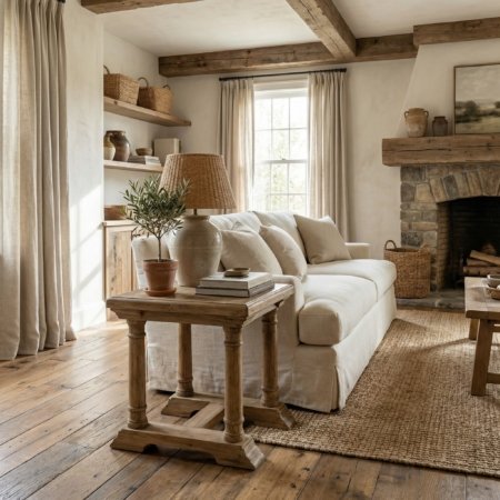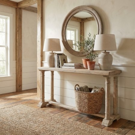 Farmhouse Wood Natural Accent Side End Table 26 Inches Tall.