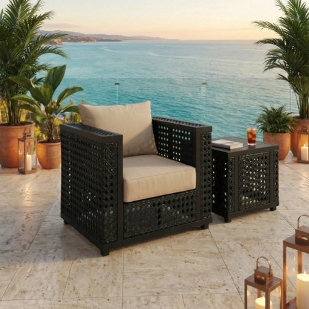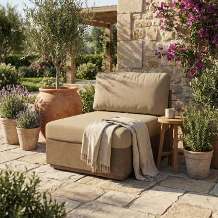 Mountain Studio Modern Rustic Outdoor Armless Single Seater with Cushion