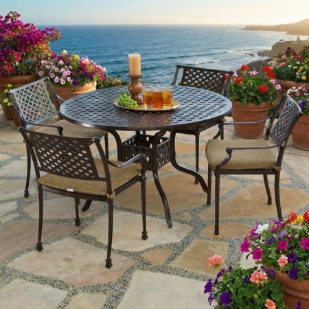 Savannah Outdoor Aluminum Round Dining Table Set of 5 (KIT)