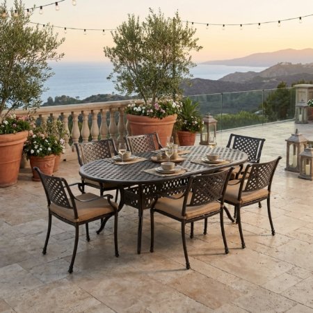 Savannah Outdoor Aluminum Oval Dining Table Set of 7 (KIT)