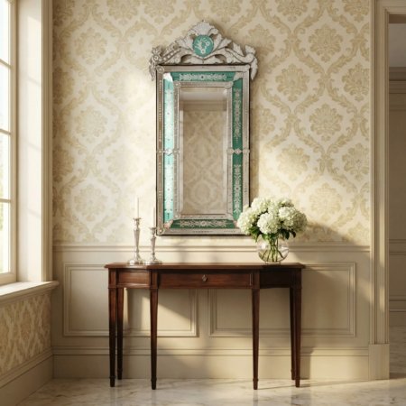 Striking Venetian Style Mirror With Seafoam Border 47.24″ Tall